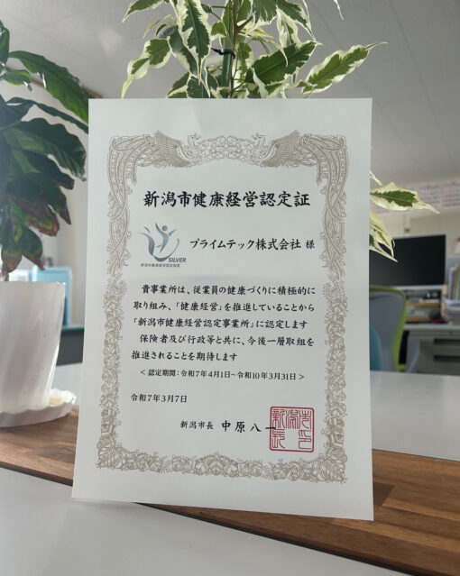 弊社が『新潟市健康経営認定事業所 シルバークラス』として認定されました。
