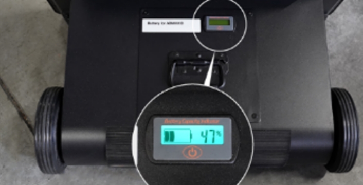 フル充電で屋外用最大12時間(屋内用最大10時間)もの連続使用が可能※な大容量のバッテリーを搭載。バッテリー残量メーターも付いているため、ひと目でバッテリー残量が確認でき、安心してご利用いただけます。