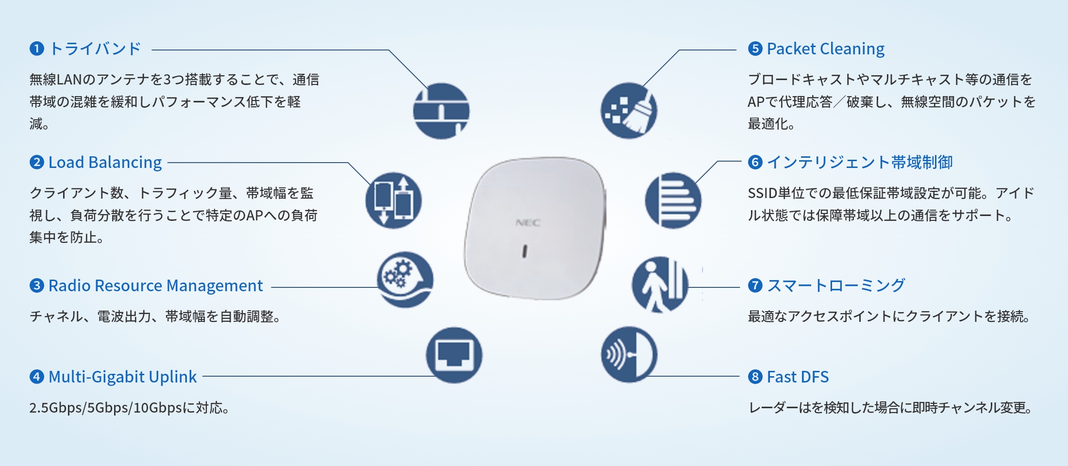 NECの最新ワイヤレステクノロジーを搭載することで、安定したカバレッジと優れたユーザーエクスペリエンスを提供します。