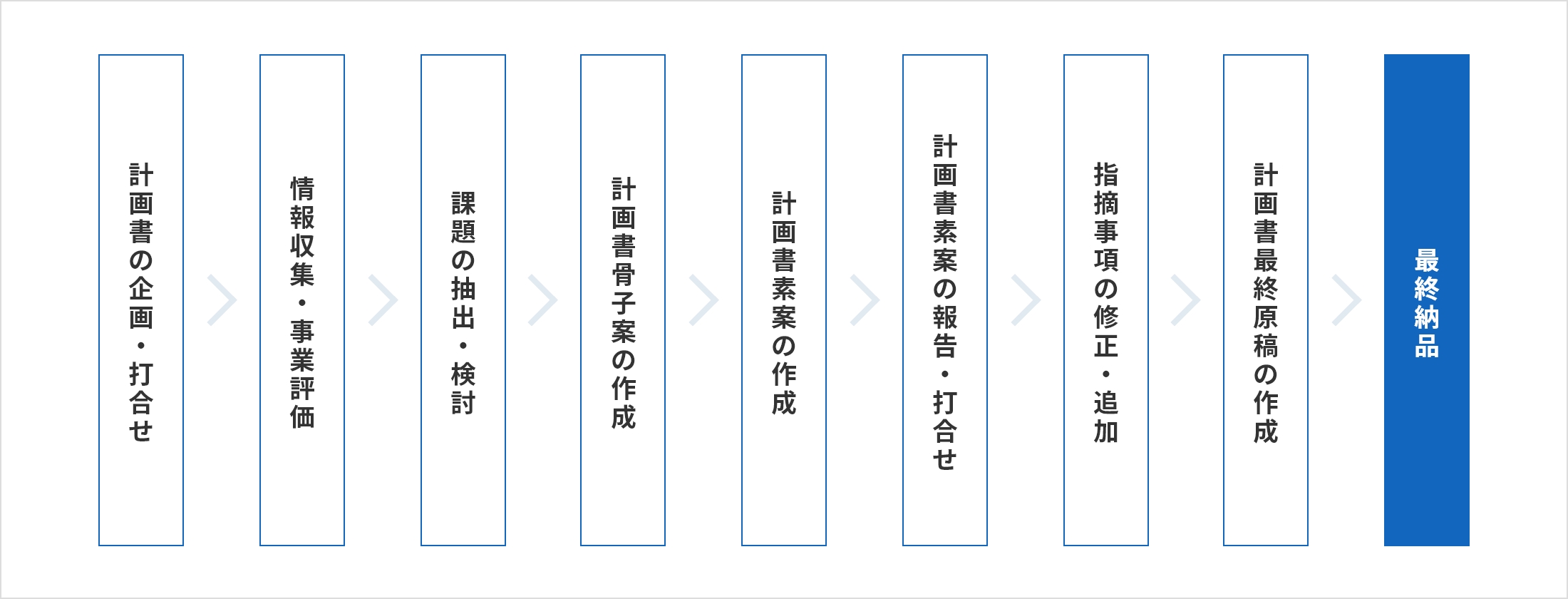 計画案の作成や会議体の運営支援など、計画策定業務のなかで求められる業務に対応します。