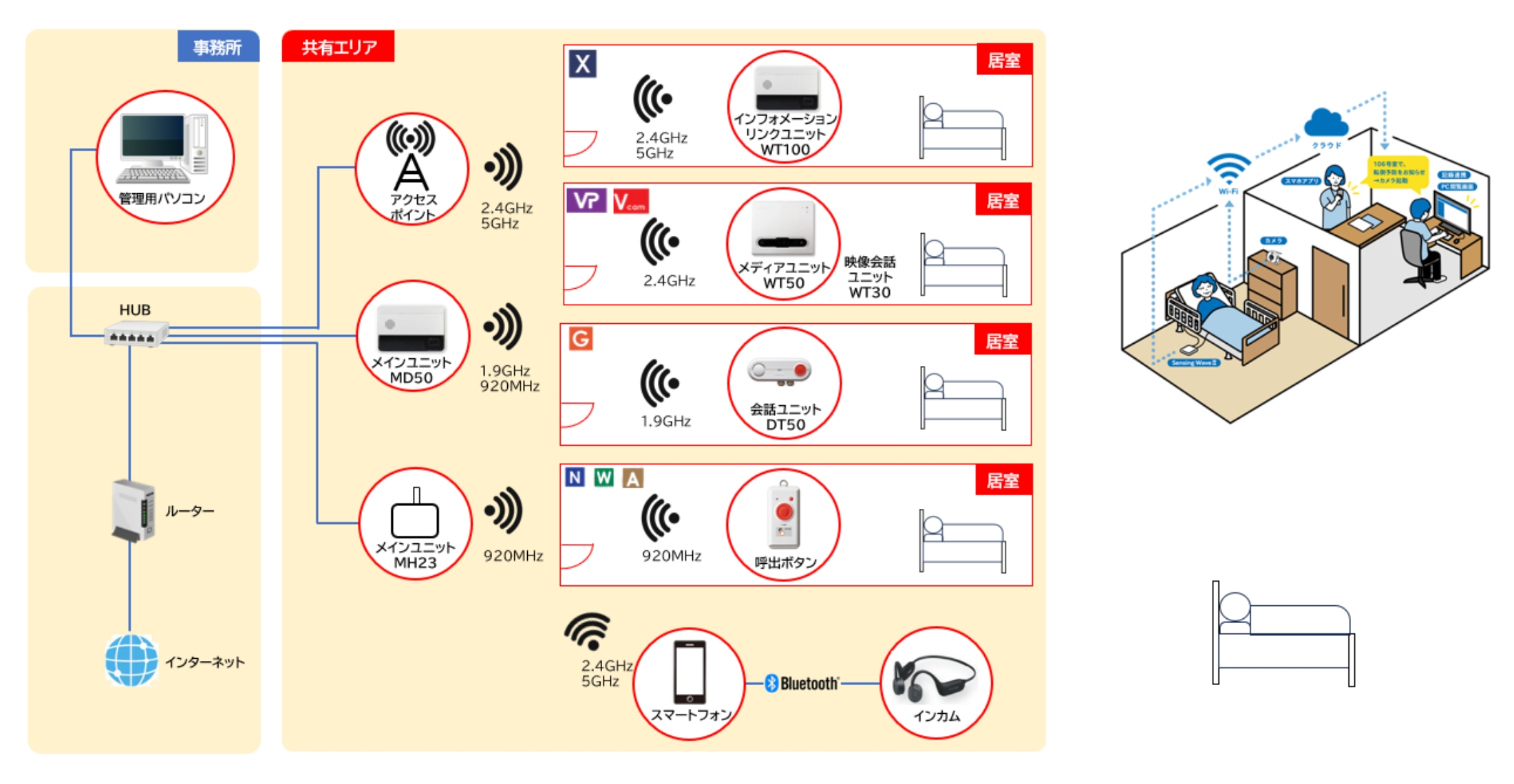 介護施設の業務効率化。入居者様の命や安全を守るナースコールです。