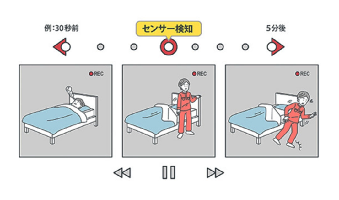 - ヒヤリハットの原因をイベント録画(起床や離床時の前後映像)可能。