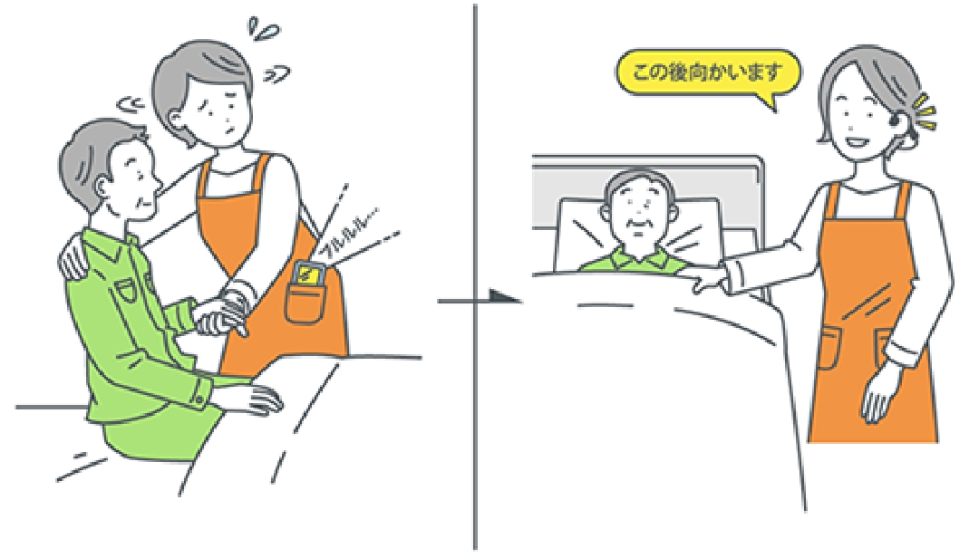 入居者様がコールボタンを押すとスマホに通知、施設スタッフと通話開始。