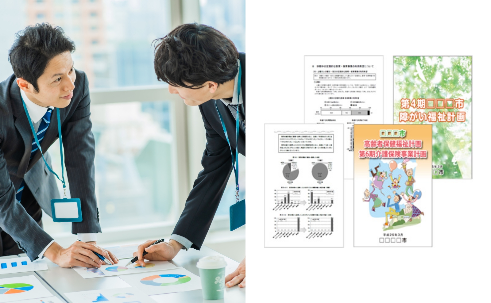 アンケートの実施や集計・分析、報告書の作成を行い、 介護や子育て支援などの計画づくりをお手伝いします。